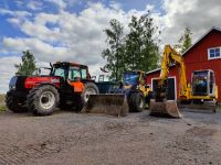 - Valtra 8350 - Wille 855 lisävarustein . New Holland 8 t / rautatelat - Volvo ECR 88 8 t / kumitelat - Multiva TRM 150 -maansiirtokärry
